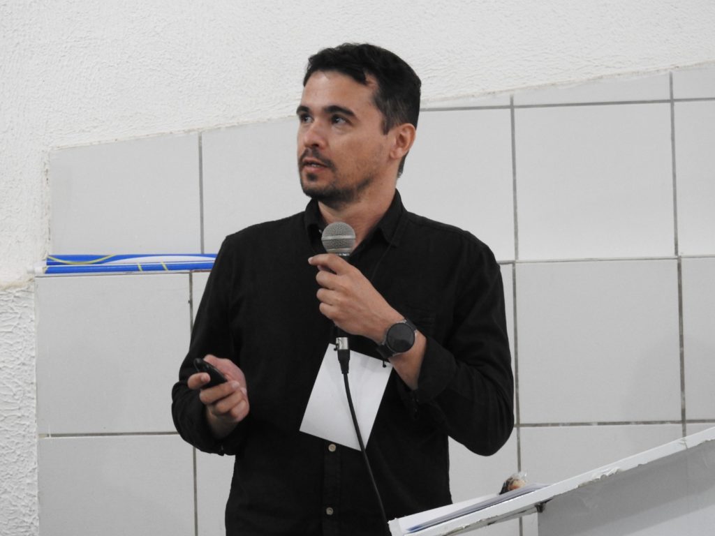 O Assessor da Diretoria de Planejamento da Cogerh, Emanuel Oliveira, esteve na mesa de abertura representando a presidência da Cogerh. Oliveira falou do histórico da gestão dos recursos hídricos cearenses, desde a criação da Cogerh, e do papel central da atuação dos Comitês de Bacia ao longo dos anos.