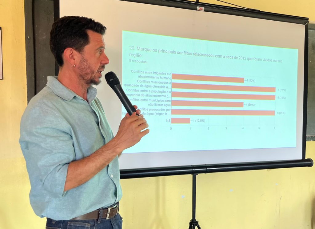 O professor Alexandre Costa abordou os aspectos técnicos do açude, como os diferentes usos da água e as vazões operadas em situações normais e de escassez. Já o professor Marcelo Cavalcanti fez uma análise dos impactos econômicos, sociais e ambientais das secas na região, a partir de questionários aplicados na oficina anterior.