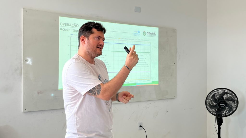 O Analista em Gestão de Recursos Hídricos da Cogerh, André Rufino, apresentou os dados da operação do Açude Itapebussu.