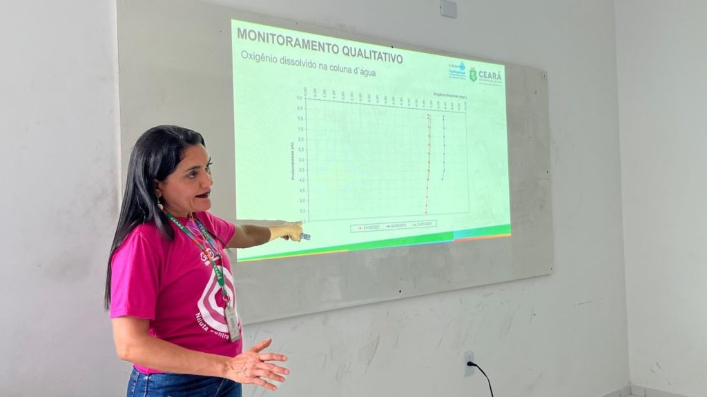 A Analista de Recursos Hídricos Francimeyre Freire ministrou uma capacitação sobre Qualidade da Água, abordando temas essenciais para a compreensão dos processos de monitoramento e tratamento.