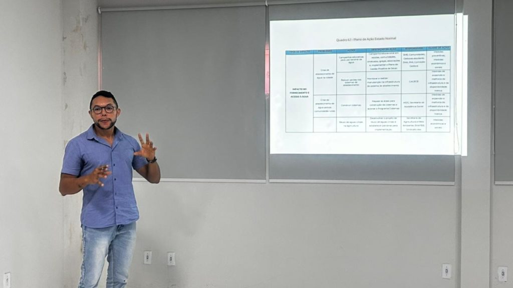 Durante o encontro, o professor Luiz Júnior apresentou os estados de seca e os possíveis cenários de racionamento de água para cada situação:
